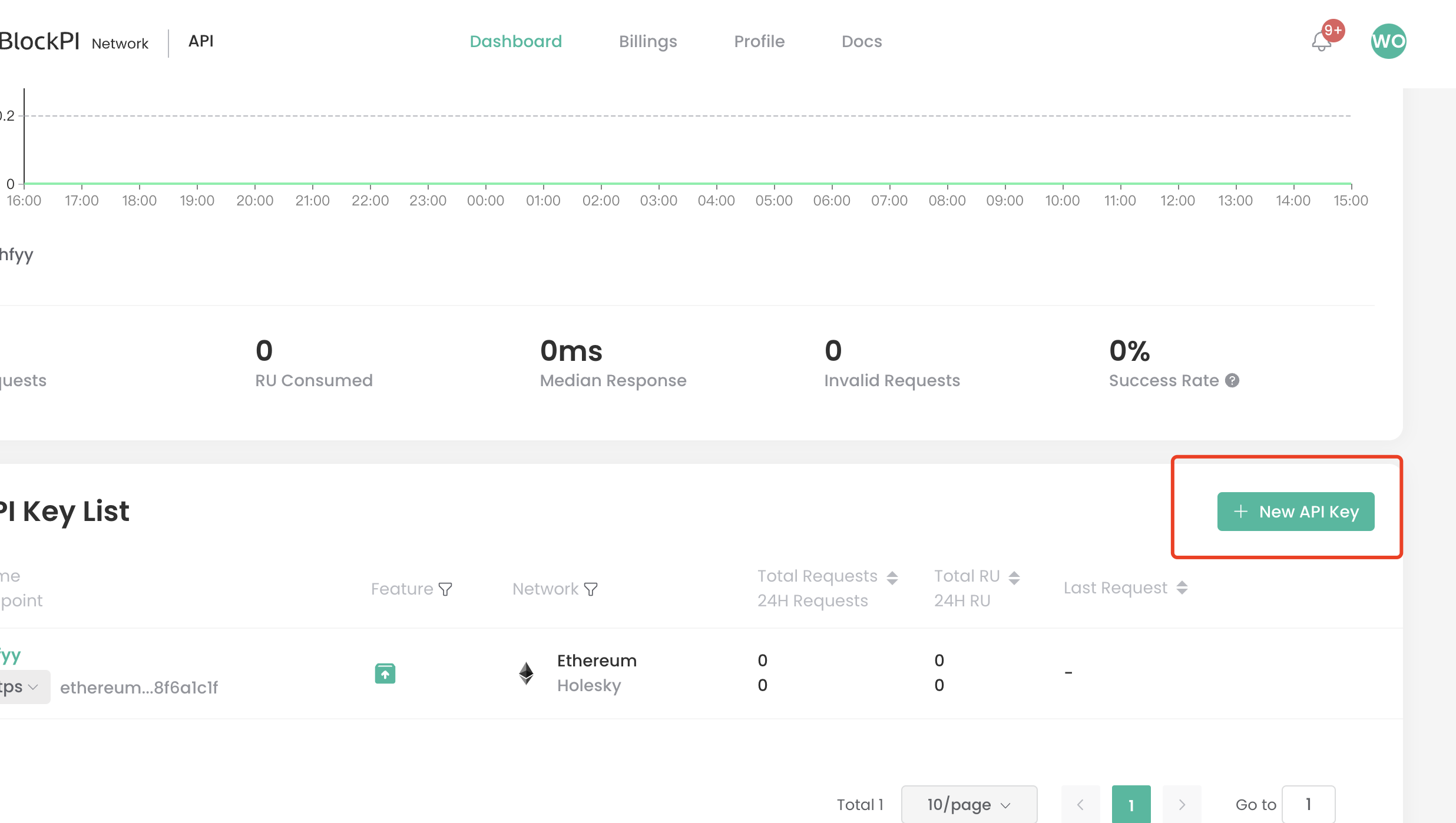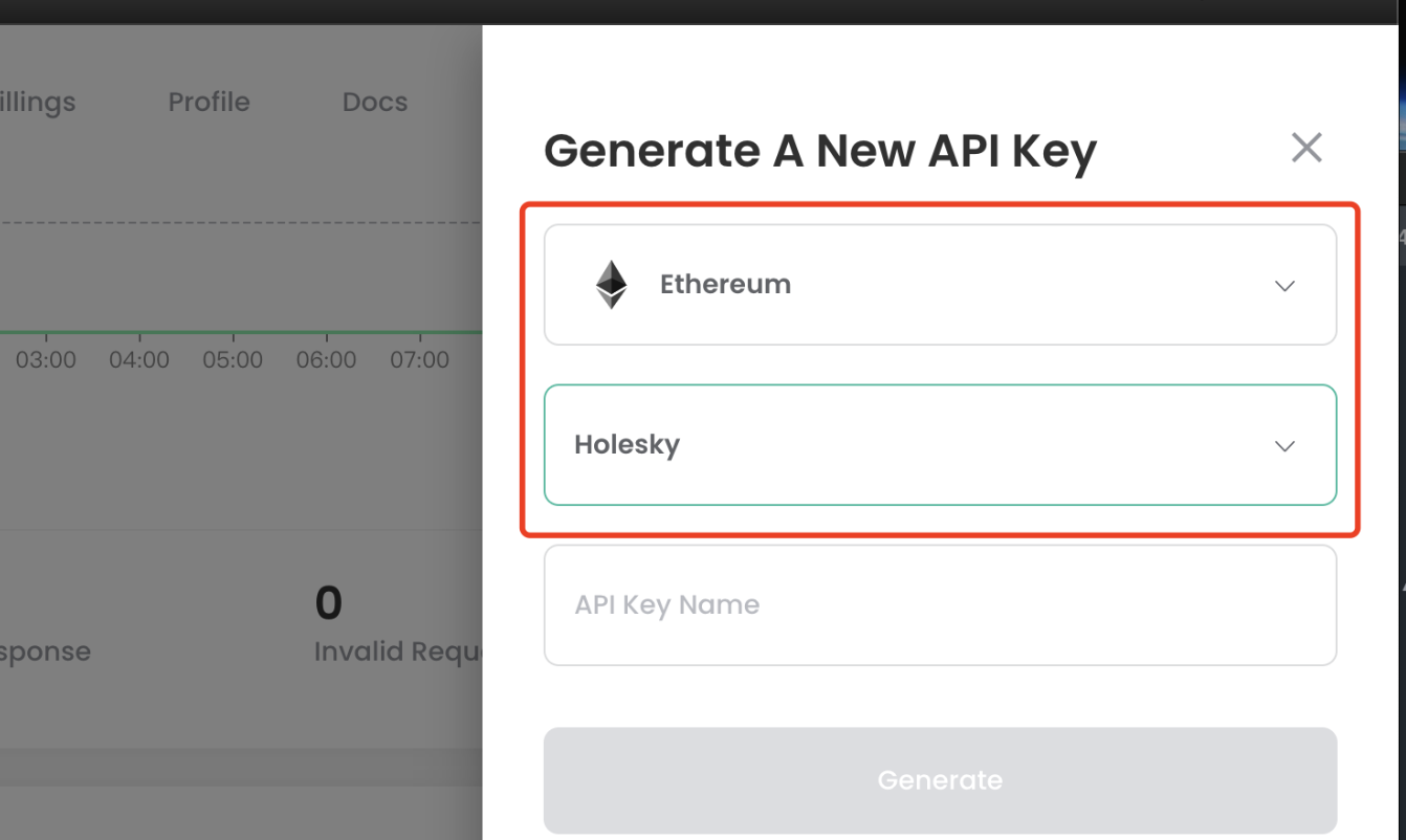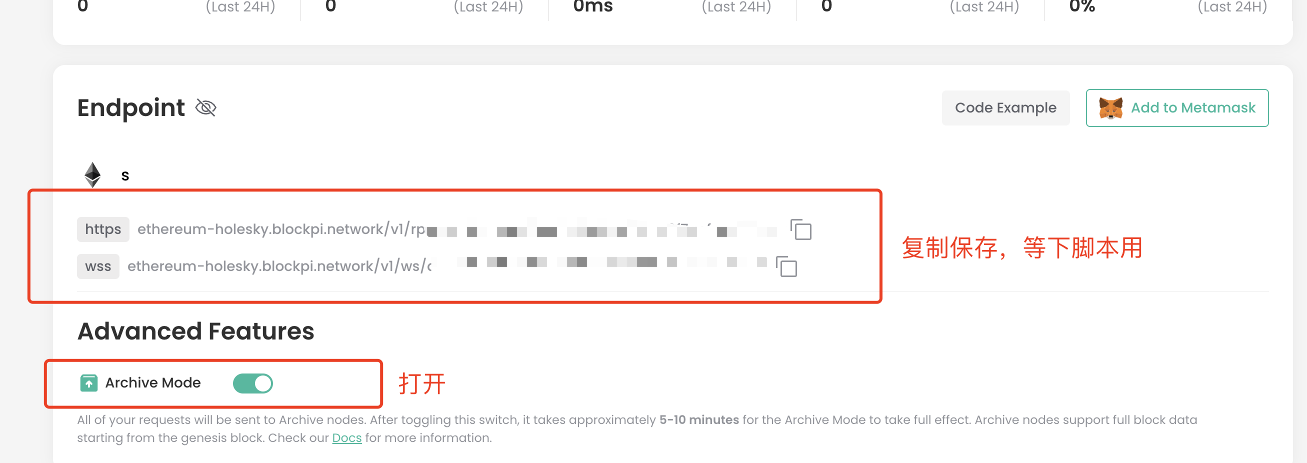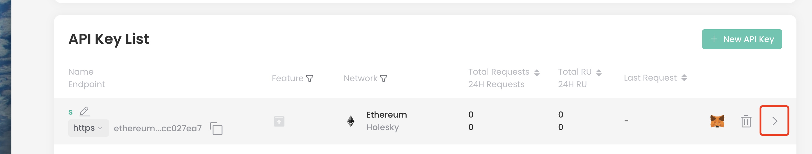b. 打开dashboard,添加new api key,选择Holesky测试网,生成api。然后进入生成的api,获取对应的rpc信息
